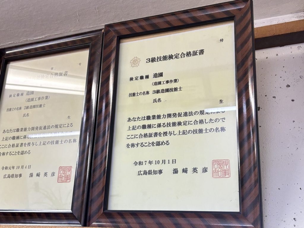 中でも、造園技能士3級に合格できたことは、自分にとって大きな自信につながりました。