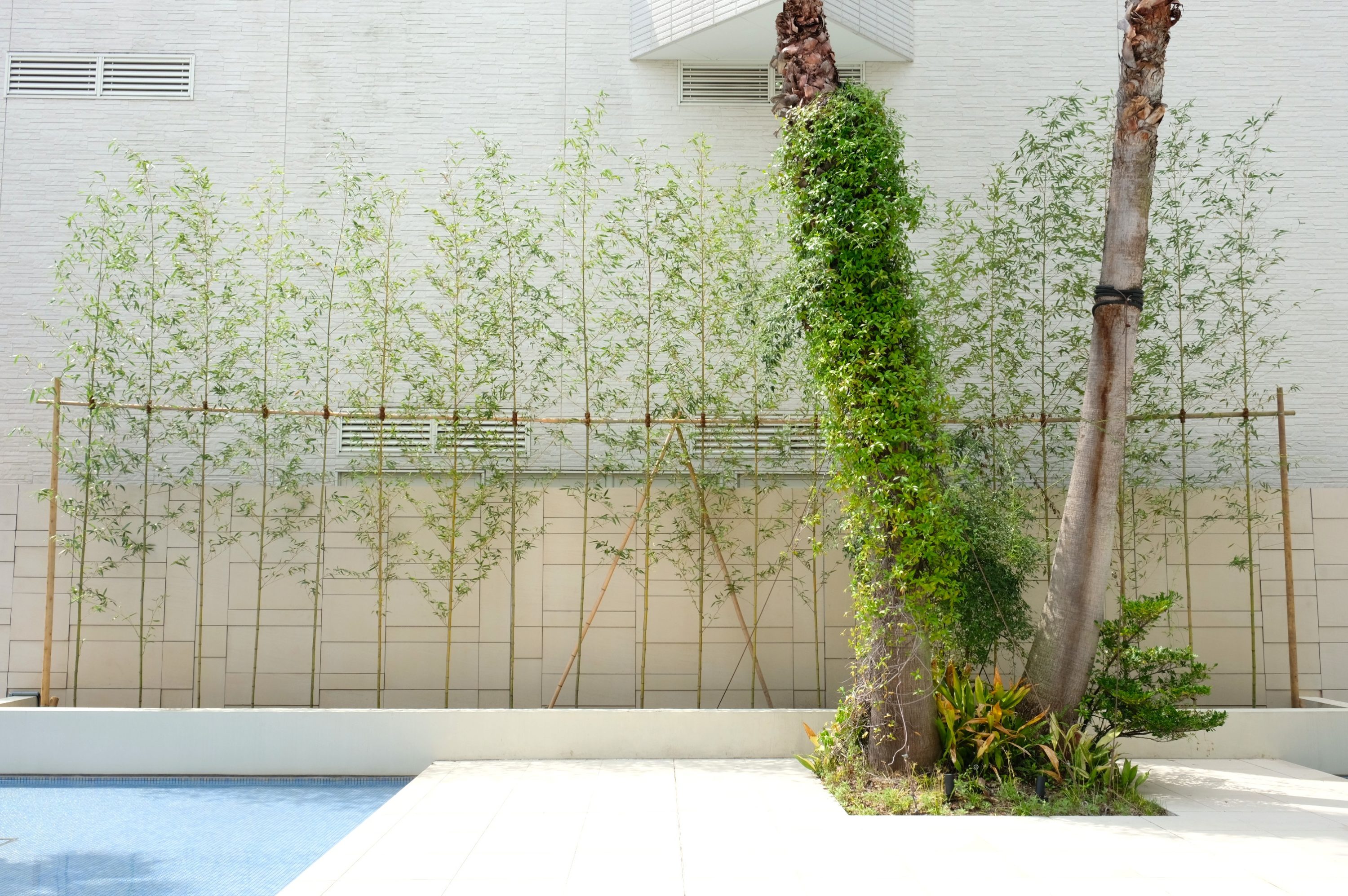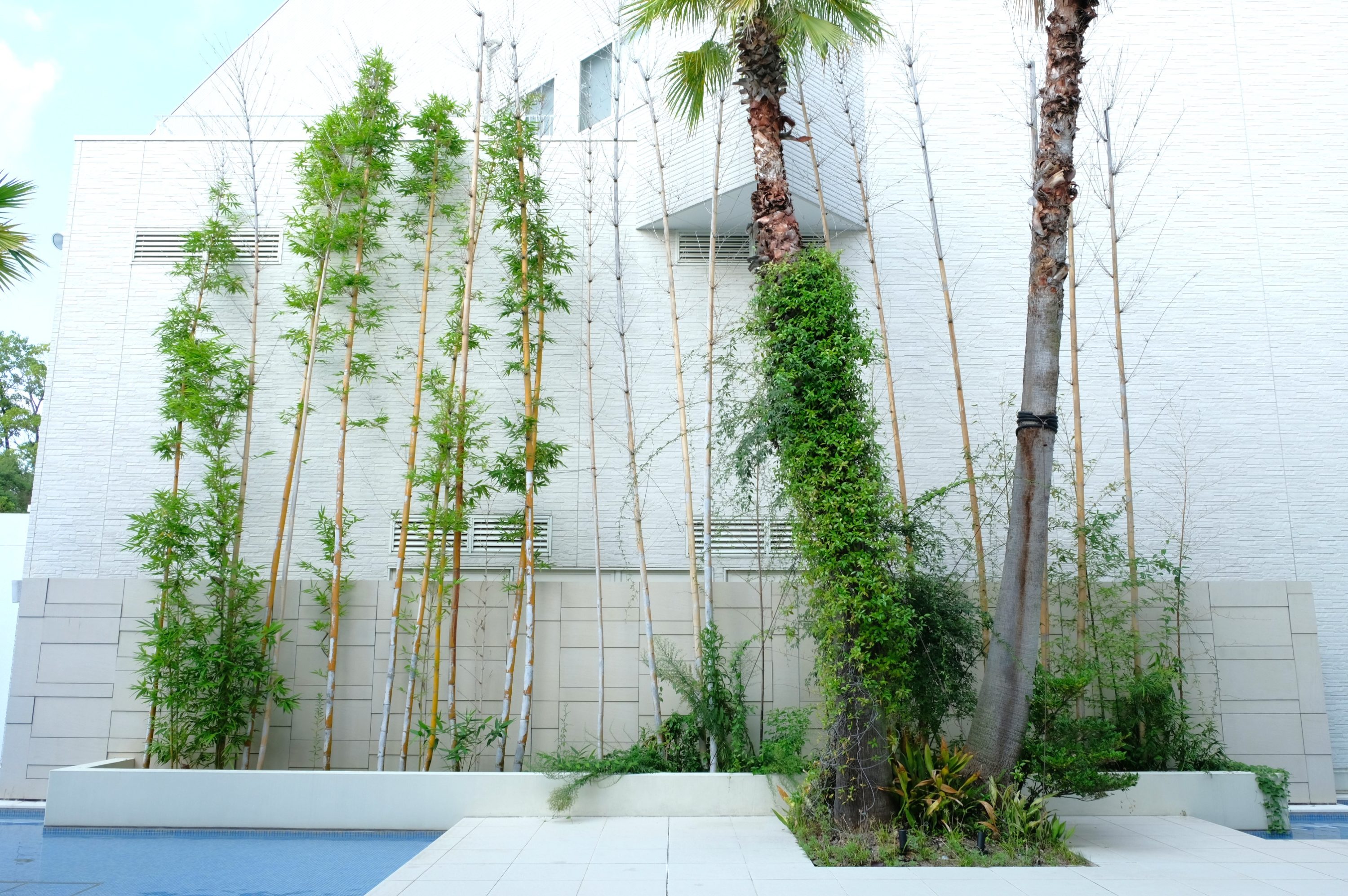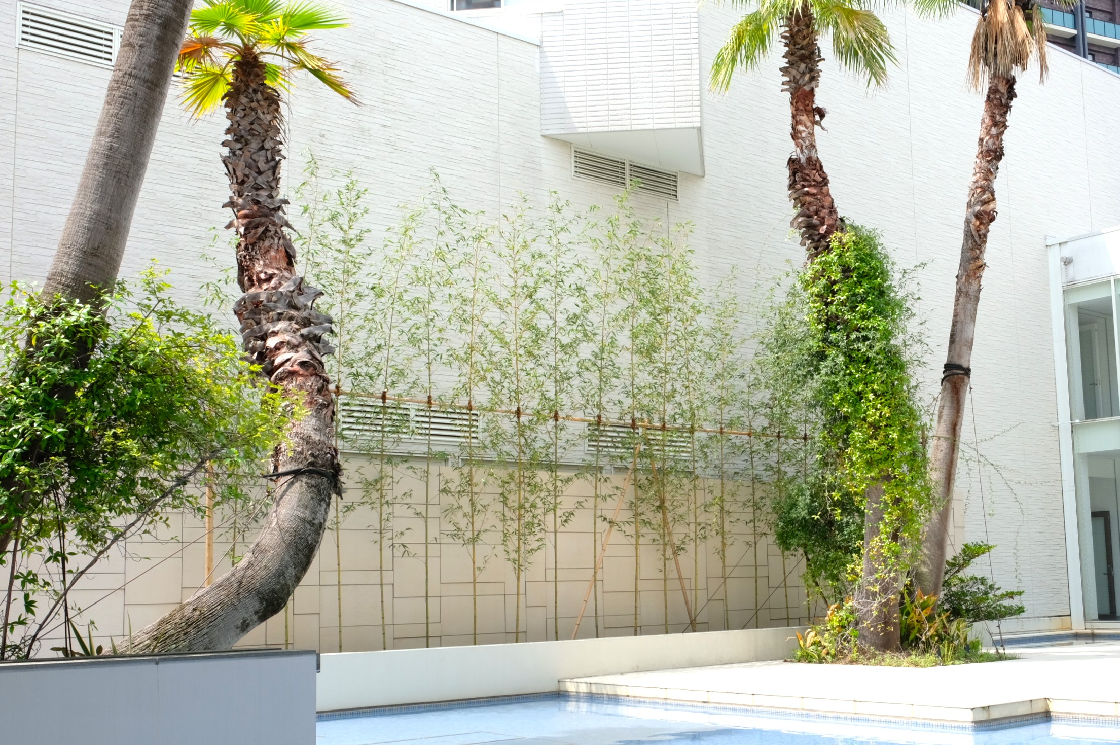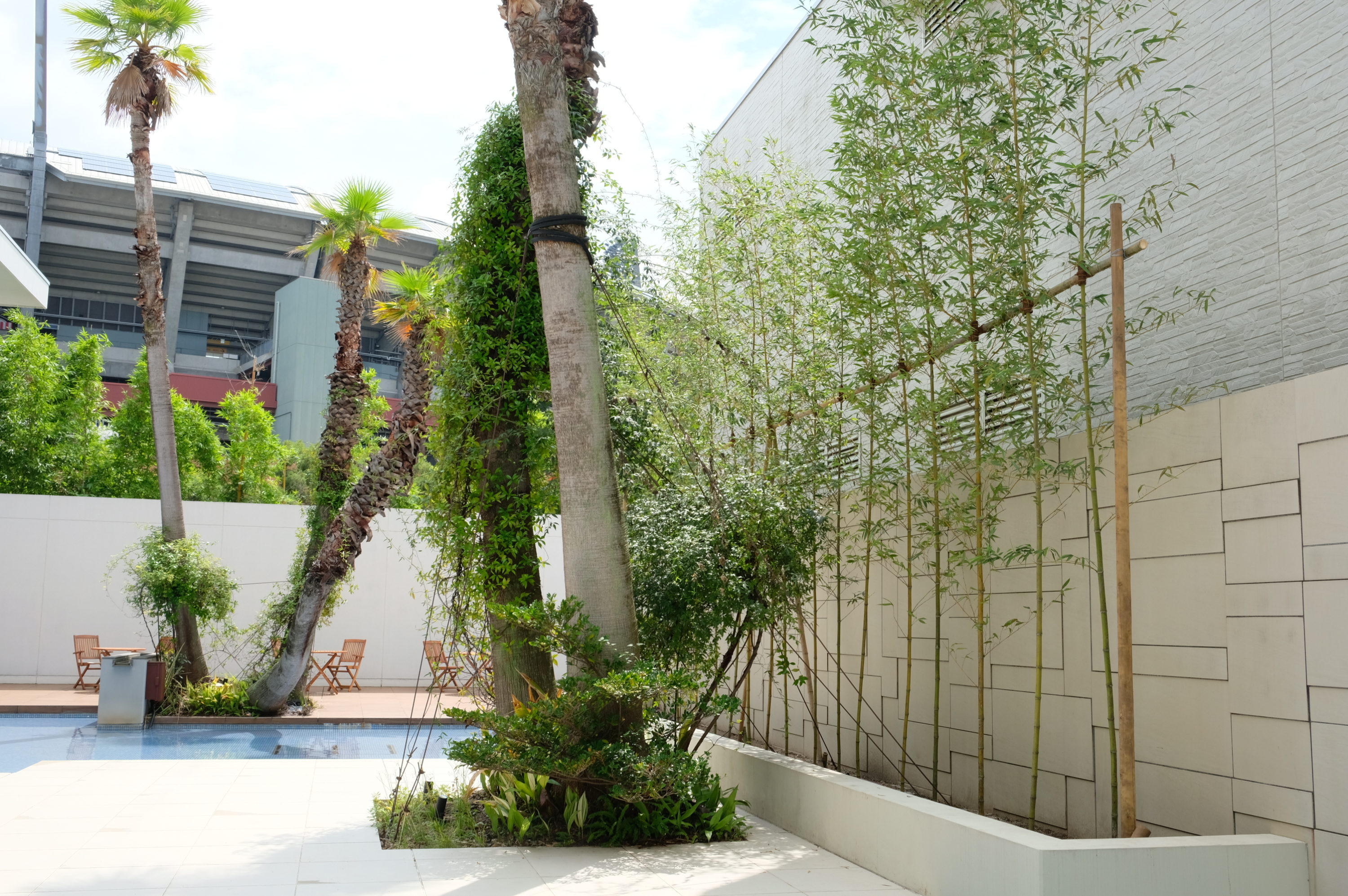 | 説明 | 広島のシンボルでもある「マツダスタジアム」に隣接する結婚式場「ララシャンスHIROSHIMA迎賓館」は、緑の木々に囲まれた心地の良い場所にあります。 披露宴会場から望むウォーターテラスには水辺空間に多数の植栽が施されており、水と光と緑が楽しめる開放的な空間が魅力のひとつとなっています。 今回、ウォーターテラスに植栽された竹が枯死・生育不良のため植替えをご依頼いただきました。 酷暑の続く時期での植栽は一般的に不向きですので、植替え前の十分な養生をしたうえで、水はけを改善する土壌改良、植替え直後の十分なかん水養生を設定しています。 成長に従い葉量が増えて、より緑に囲まれた景観が披露宴会場を訪れる方々を魅了する空間を演出してくれることを期待しています。 施工日数:4日間 |